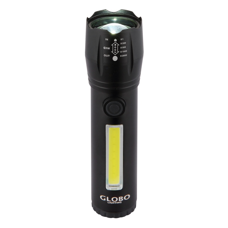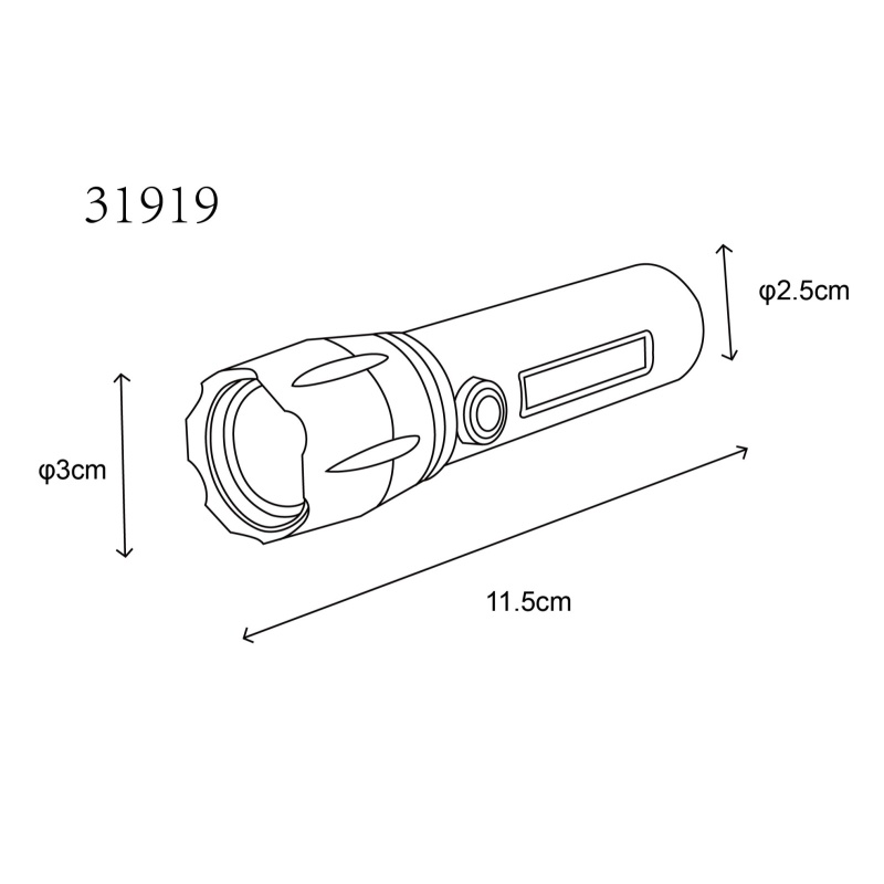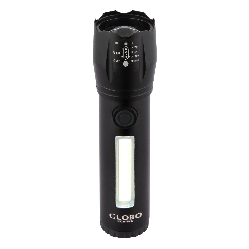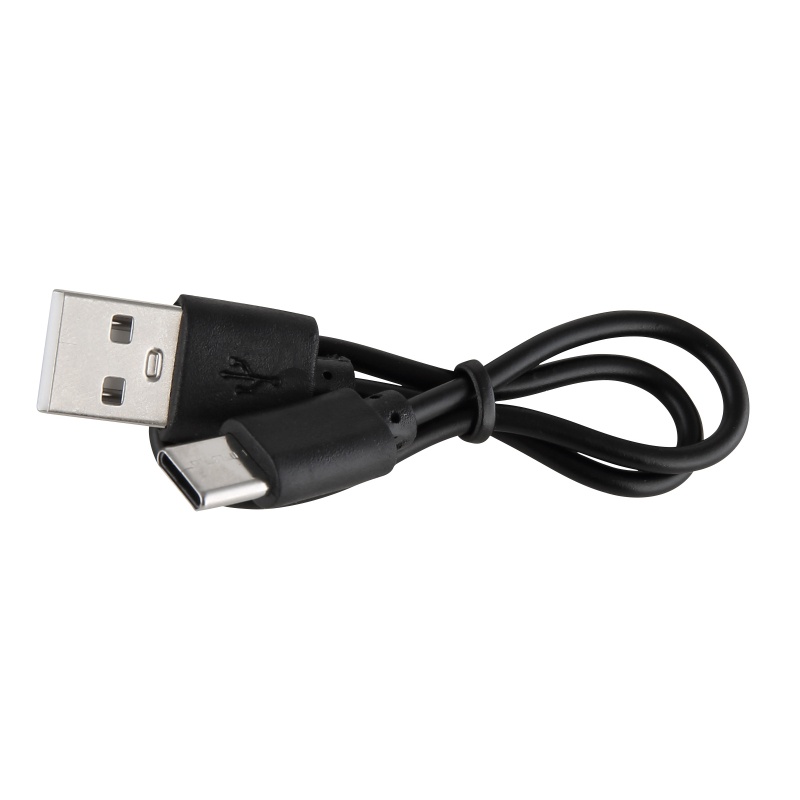 taskulamp alumiinium must matt, plastikust läbipaistev, rõhulüliti, astmelüliti, USB-A 2.0 - USB-C, akuga kaasas CR18650 1200mAh 3.7V, ø: 30mm, H: 115mm, kaabli pikkus 300mm, sh LED 3W 3V, 100lm väljund, 5500K, sh LED 3W 230V, 130lm väljund, 5000K