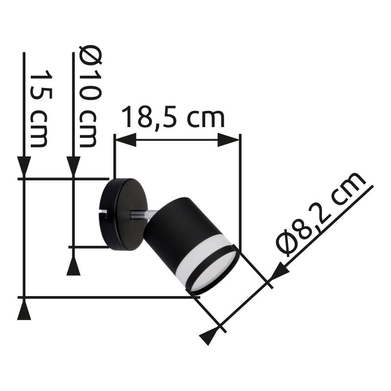 prožektorid metall must matt, metall must matt, plastik valge, LxK: 100x150mm, AL: 185mm, sh 1x GX53 LED 7W 230V, 600lm Allikas, 364lm väljund, 3000K, tink. LED pirn 10161
