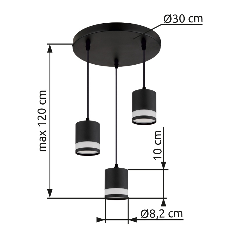 laelamp metall must matt, metall must matt, plastik valge, kaabel PVC must, Vähendatav kõrgus, Ø: 300mm, H: 1100mm, sh 3x GX53 LED 7W 230V, 600lm Allikas, 364lm Väljund, 3000K, ink. LED pirn 10161