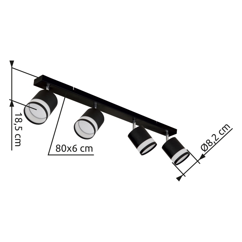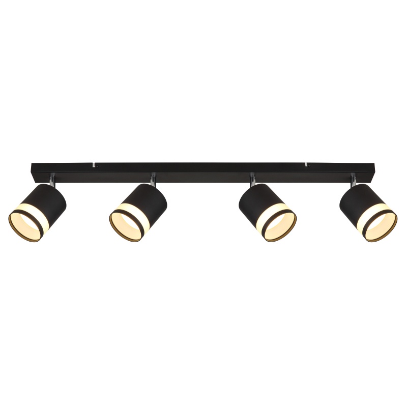 prožektorid metall must matt, metall must matt, plastik valge, PxLxK: 800x82x185mm, sh 4x GX53 LED 7W 230V, 600lm allikas, 364lm väljund, 3000K, tindi. LED pirn 10161