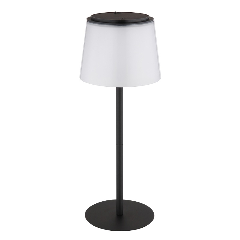 laualamp metallist must matt, plastikust satiinitud, plastik must matt, kaabel PVC must, puutetundlik sisse/välja, hämardatav, pidev puutetundlik dimmer, mälufunktsioon, v.a adapter, USB-A 2.0 - USB-C, IP44, ø: 130mm, H: 340mm, kaabli pikkus 800mm, LED 1.8W 230V, 150lm väljund, 3000K