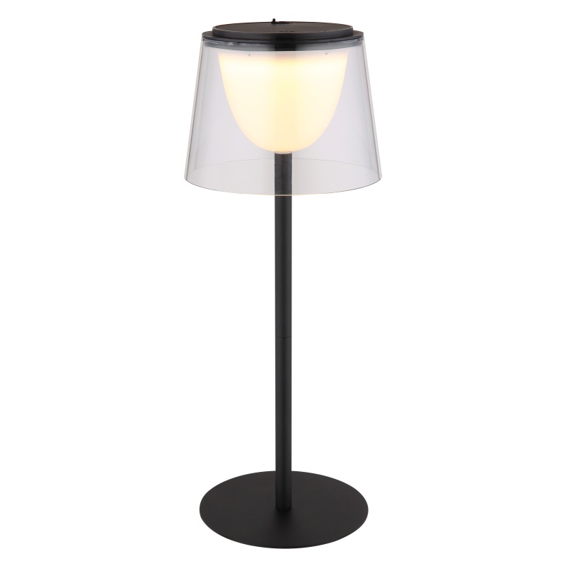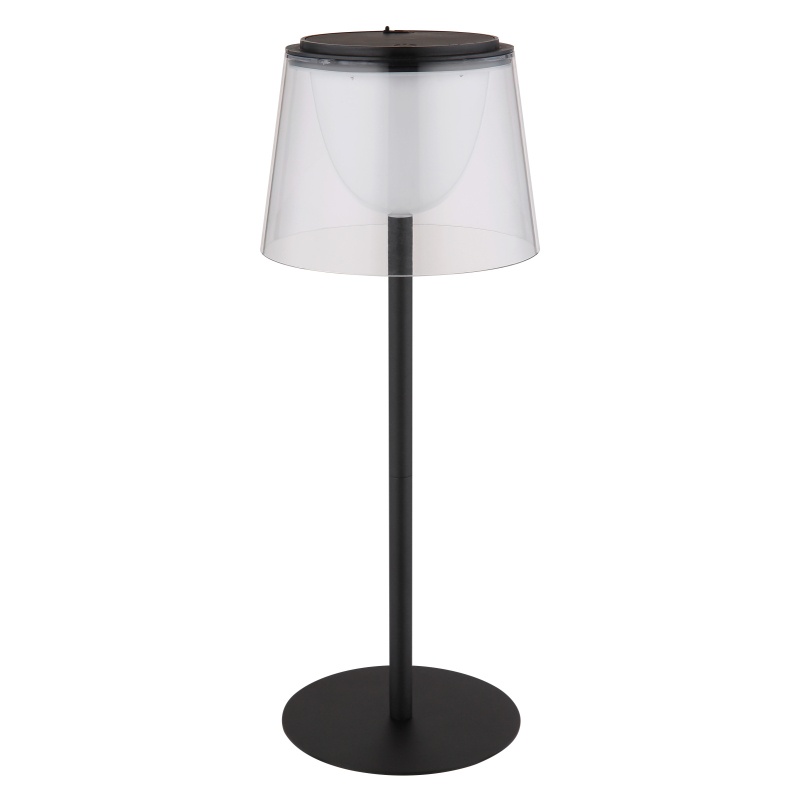 laualamp metallist must matt, plastikust läbipaistev, plastik must matt, kaabel PVC must, puutetundlik sisse/väljas, hämardatav, pidev puutetundlik dimmer, mälufunktsioon, v.a adapter, USB-A 2.0 - USB-C, IP44, ø: 130mm, H 340mm, kaabli pikkus 800mm, LED 1.8W 230V, 150lm väljund, 3000K