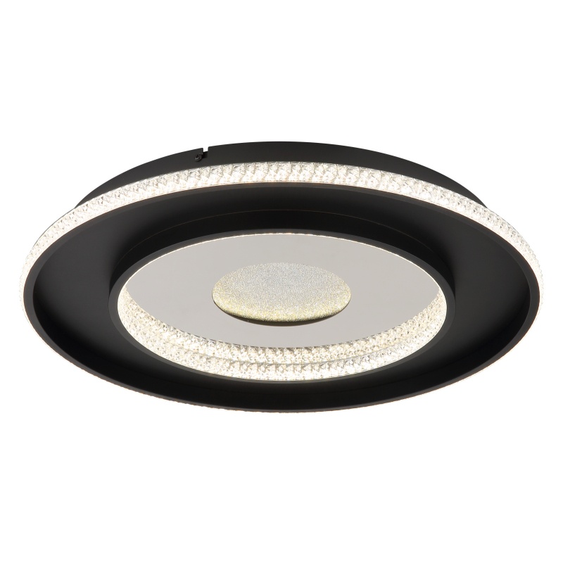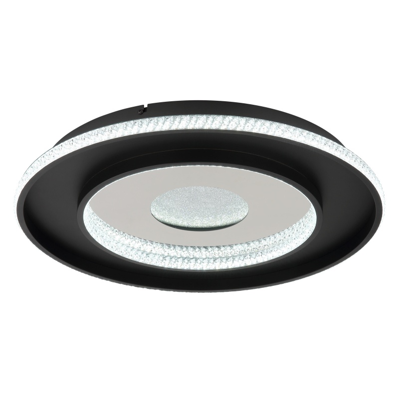 lagi kerge metall must matt, alumiinium must matt, plastkristallid selged, plastikust peegelkristalli efekt, hämardatav, mitmeastmeline seinalüliti, värvi fikseerimine, mälufunktsioon, taimer, kaugjuhtimispult, ø: 525mm, H: 60mm, LED 30W 230V, 300-1362lm, CCT 2700-6500K