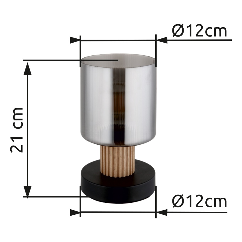 laualamp metall must matt, puit tumepruun, klaas suitsuvärvi, kaabel PVC must, klahvlüliti kaablil, ø: 120mm, K: 210mm, Kaabli pikkus 1500mm, v.a 1x E27 25W 230V