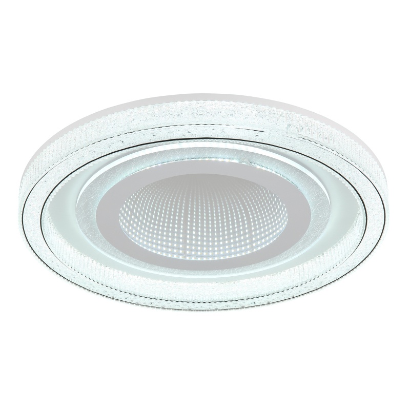 lae kerge metall valge matt, akrüülkristallselge, plastikust peegeldatud 3D-efekt, akrüül selge, hämardatav, mitmeastmeline seinalüliti, värvi fikseerimine, mälufunktsioon, öövalgus, kaugjuhtimispult, ø: 480mm, H: 70mm, LED 48W 230V, 220-2640lm väljund, CCT 2700-6000K