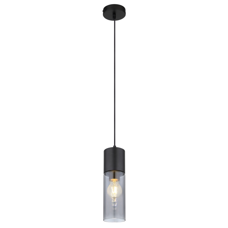 pendant lamp metal black matt, glass smoke colored, metal black matt, cable Textile black, ø: 100mm, H: 1525mm, excl. 1x E27 25W 230V