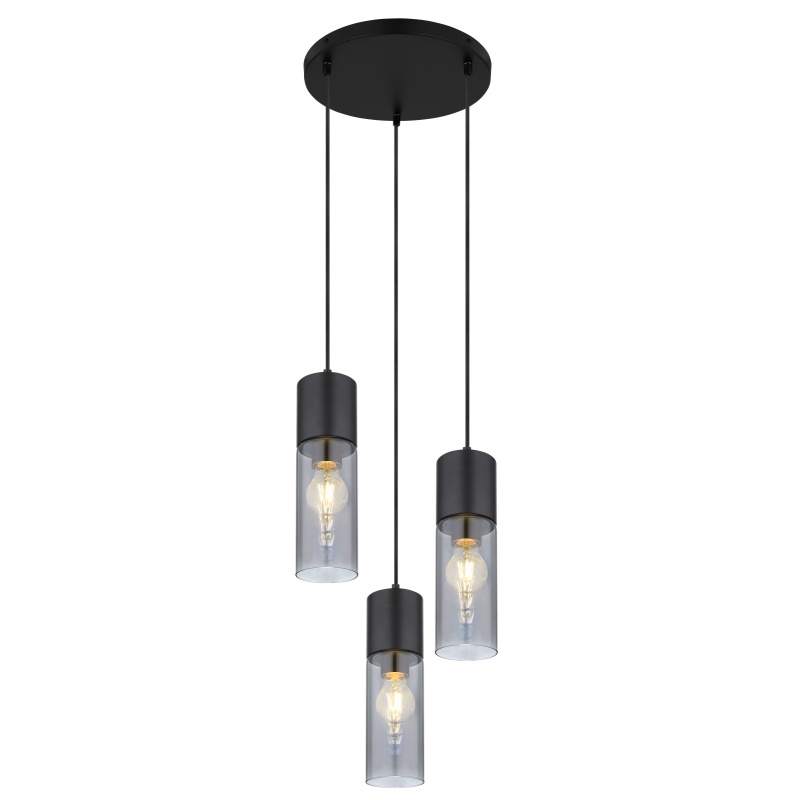 pendant lamp metal black matt, glass smoke colored, metal black matt, cable Textile black, ø: 300mm, H: 1500mm, excl. 3x E27 25W 230V