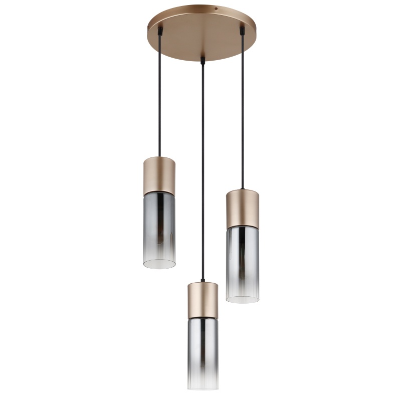 laelamp metallist cappuccino värvi matt, klaas suitsuvärvi, selge segu, kaabel Tekstiil must, Vähendatav kõrgus, ø: 340mm, K: 1500mm, v.a 3x E27 25W 230V