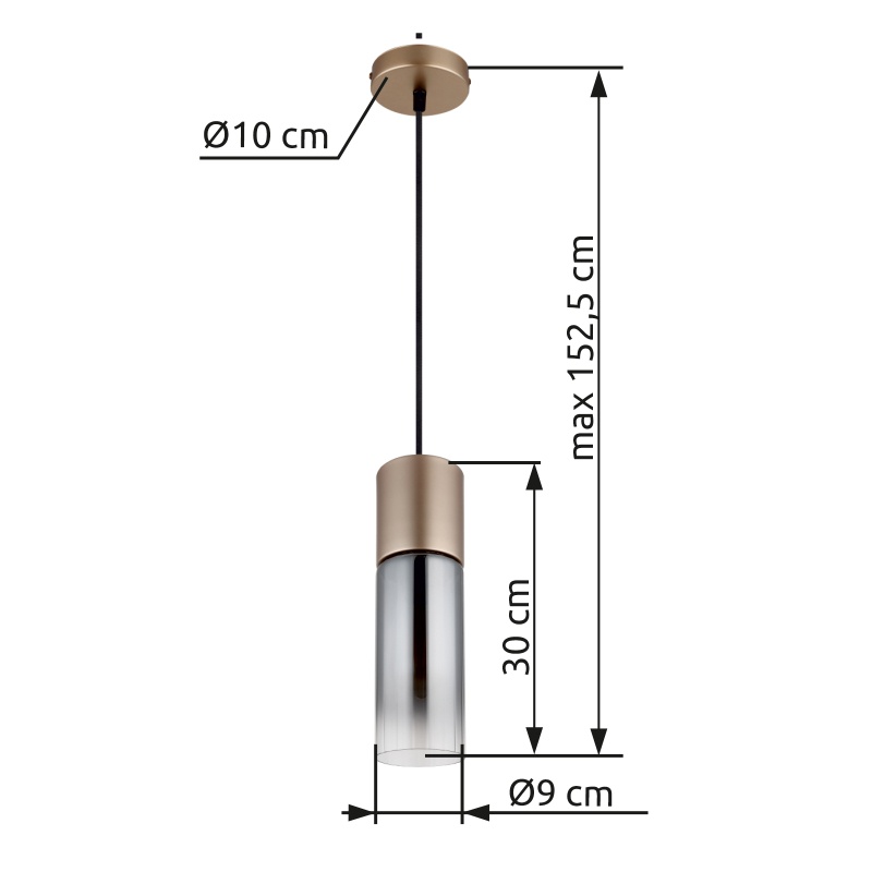 laelamp metallist cappuccino värvi matt, klaas suitsuvärvi, selge segu, kaabel Tekstiil must, Vähendatav kõrgus, Ø: 100mm, K: 1525mm, v.a 1x E27 25W 230V