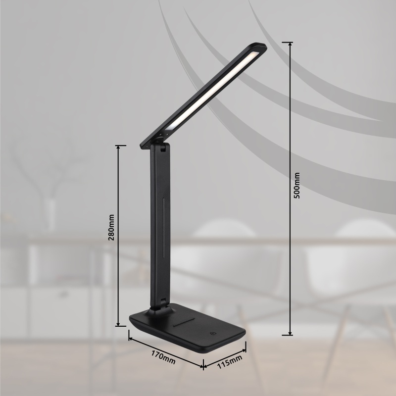 laualamp plastikust must matt, plastik valge, kunstnahk must matt, kaabel PVC must, puutetundlik sisse/välja, hämardatav, puutetundlik dimmer, pidev puutetundlik dimmer, värvikinnitus, v.a adapter, USB-C-USB-C, LxLxK: 280x115x500mm, LED 4W 230V, 143lm väljund, CCT 2700/6500/4000K