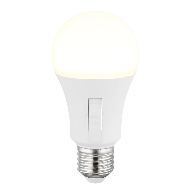 LED pirn plastikust valge, plastik valge matt, alumiinium nikkel matt, liuglüliti, astmelüliti, ø: 60mm, K: 120mm, sh 1x E27 LED 9W 230V, 830lm allikas, 830lm väljund, CCT 3000/4000/6500K