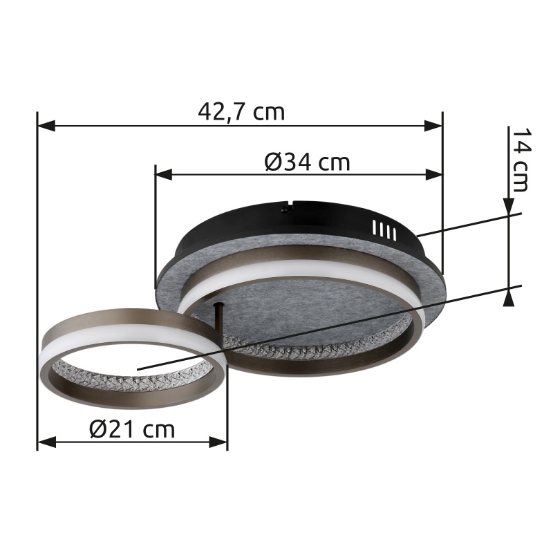 lagi kerge metall must matt, alumiiniumhall tume, plast valge, plastkristallid selged, mitme sammuga seinalüliti, värvi fikseerimine, mälufunktsioon, öövalgus, teisaldatav, PxLxK: 472x340x140mm, sh LED 30W 230V, 3600lm allikas, 1200lm väljund, CCT 3000/4000/6000K