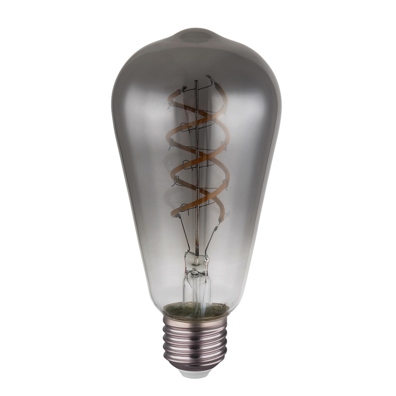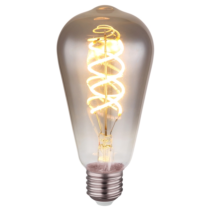 LED bulb glass smoke colored, Dimmable, ø: 64mm, H: 141mm, incl. 1x E27 LED 6.5W 230V, 220lm Source, 220lm Output, 2000K