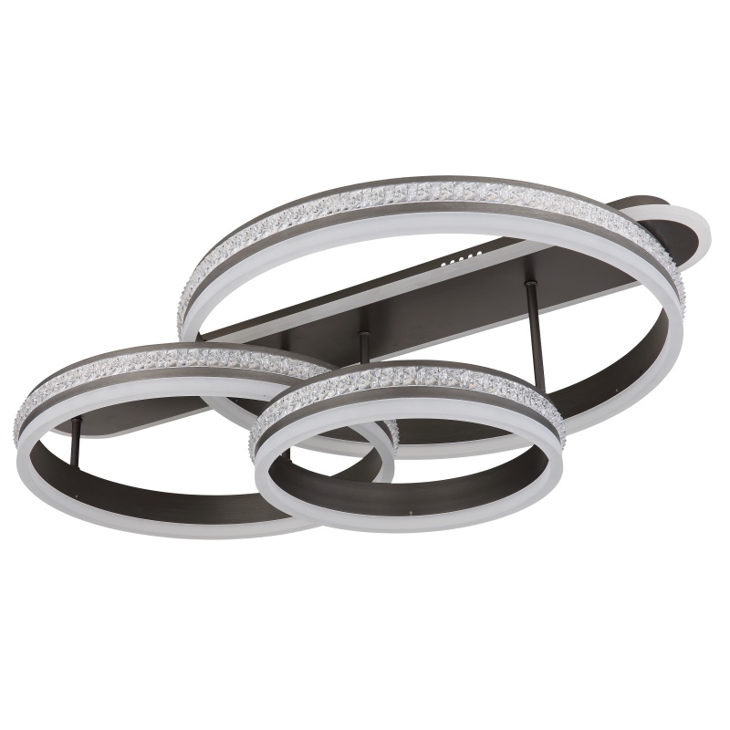 ceiling light metal/aluminium titanium color brushed, plastic crystals clear, acrylic white, Dimmable, Many Steps Wall Switch, Memory, Night light, Remote Control, LxWxH:800x500x215mm, LED 75W 230V, 840-8720lm Source, 480-3820lm Output, CCT 2700-6000