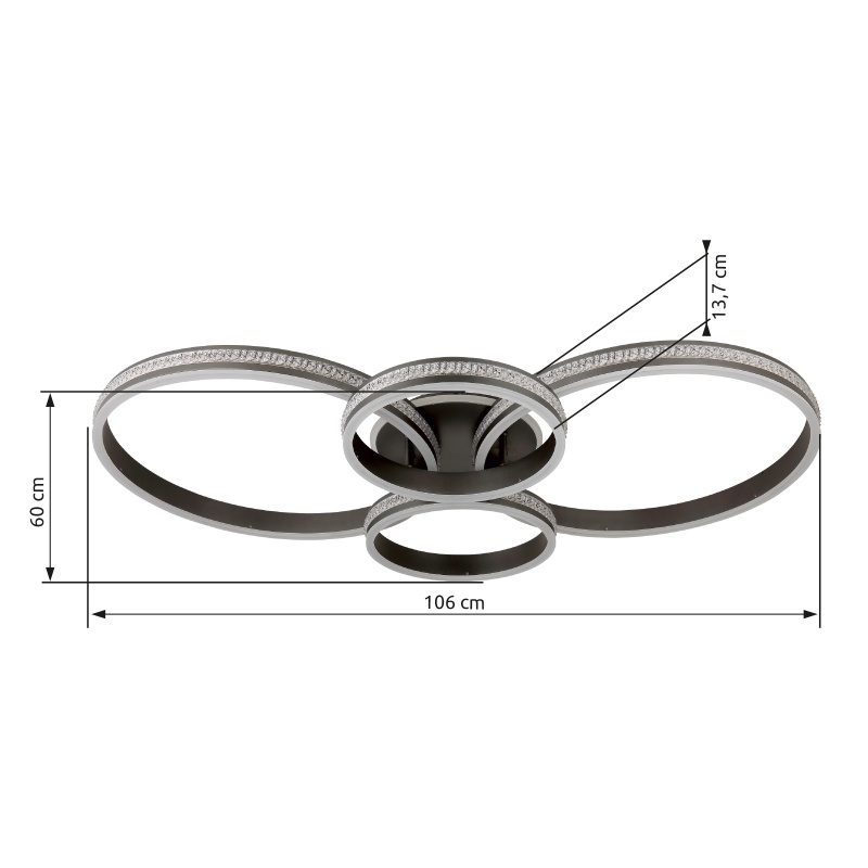 Lagi kerge metall titaanvärv matt, alumiinium titaani värv matt, plastkristallid selged, Paljude sammude seinalüliti, Värvi fikseerimine, Mälufunktsioon, PxLxK: 1060x600x137mm, sh LED 39W 230V, 4200lm allikas, 2500lm väljund, CCT 2700/4500/6500K