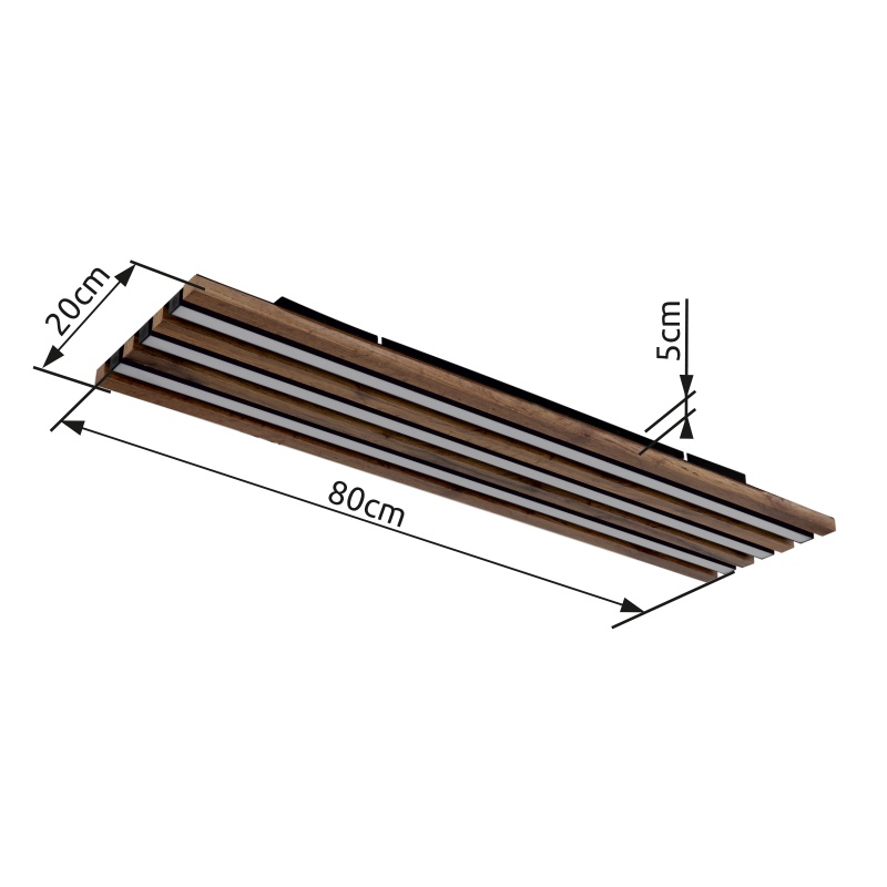 lagi kerge metall must matt, MDF puit näeb välja tume, alumiinium must matt, plastik valge, PxLxK: 800x200x50mm, sh LED 30W 230V, 3100lm allikas, 1500lm väljund, 3000K