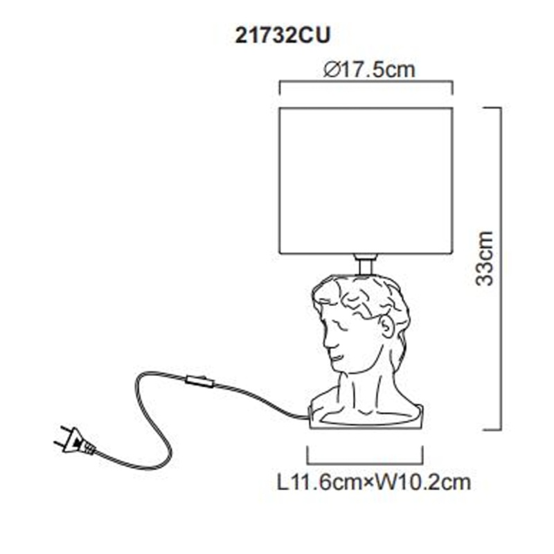 laualamp keraamika karrivärvi, tekstiil karrivärvi, kaabel PVC valge, klahvlüliti kaablil, ø: 175mm, H: 330mm, Kaabli pikkus 1300mm, v.a 1x E14 40W 230V