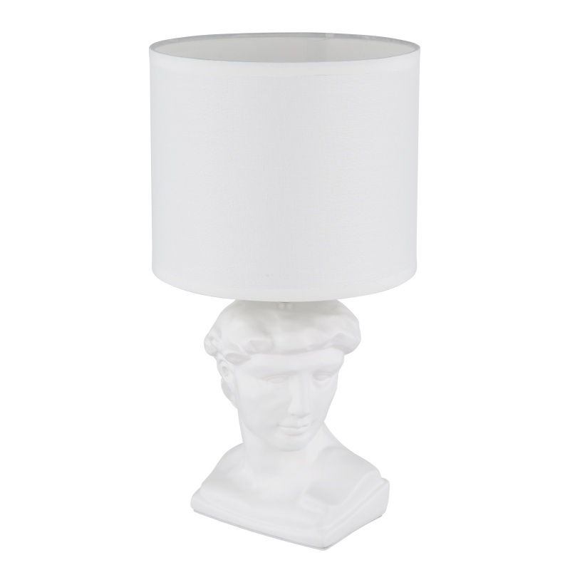 laualamp keraamika valge, tekstiil valge, kaabel PVC valge, klahvlüliti kaablil, ø: 175mm, H: 330mm, Kaabli pikkus 1300mm, v.a 1x E14 40W 230V