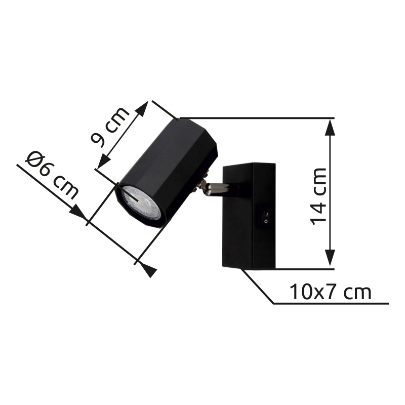 prožektorid metall must matt, alumiinium must matt, lülituslüliti, LxK: 70x140mm, AL: 145mm, v.a 1x GU10 25W 230V
