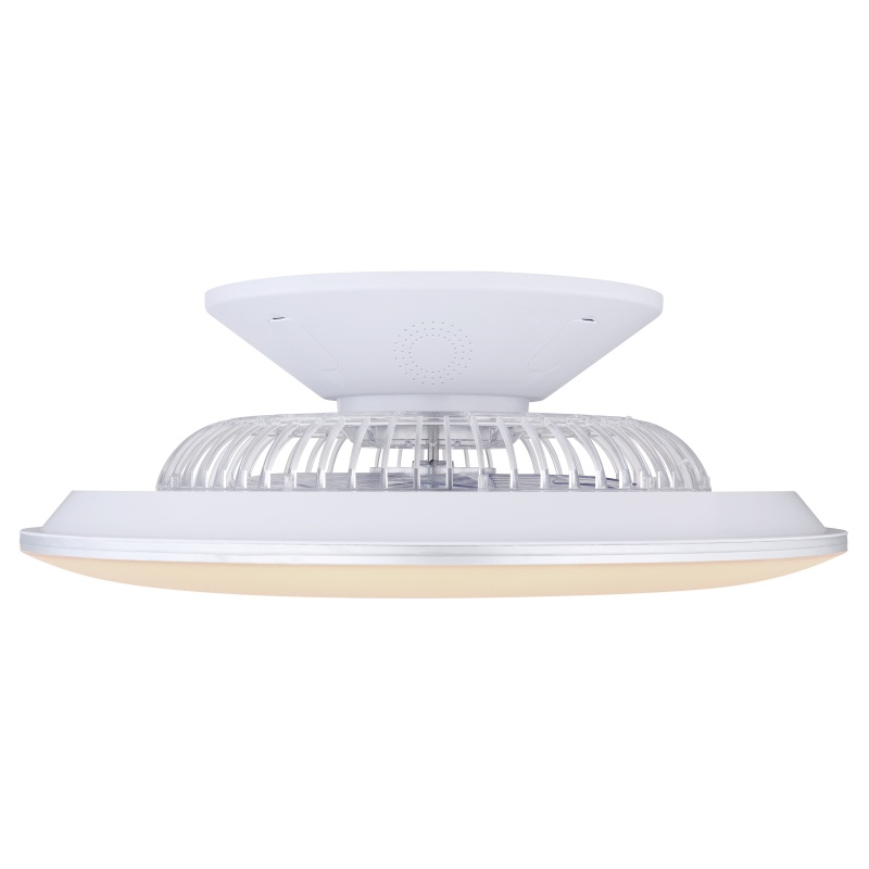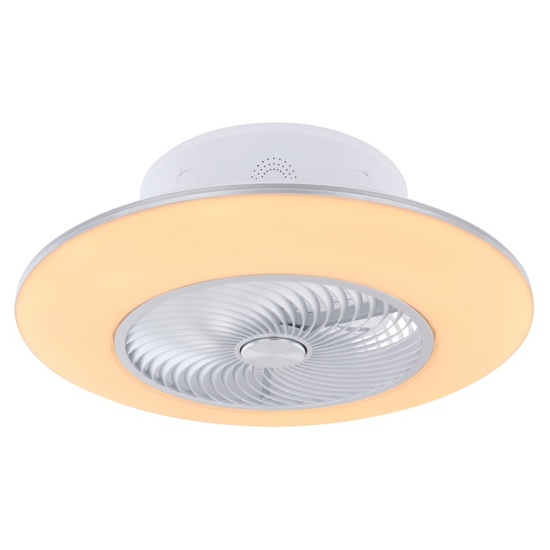 Ceiling fan metal/acrylic white, metal silver metallic, dimmable, memory function, night light, timer, remote control, max. motor power 33W, 24m², 870/1050/1130 RPM, ø:580mm, H:220mm, incl. LED 36W 230V, 4500lm Source, 2200lm Output, CCT 3000-6000K