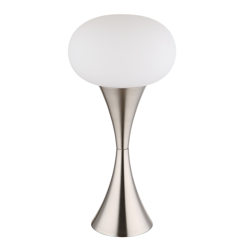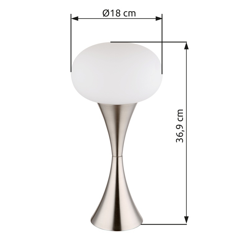 laualamp metallist nikkel matt, klaas valge, kaabel PVC must, klahvlüliti kaablil, ø: 180mm, K: 369mm, Kaabli pikkus 1500mm, v.a 1x E14 25W 230V
