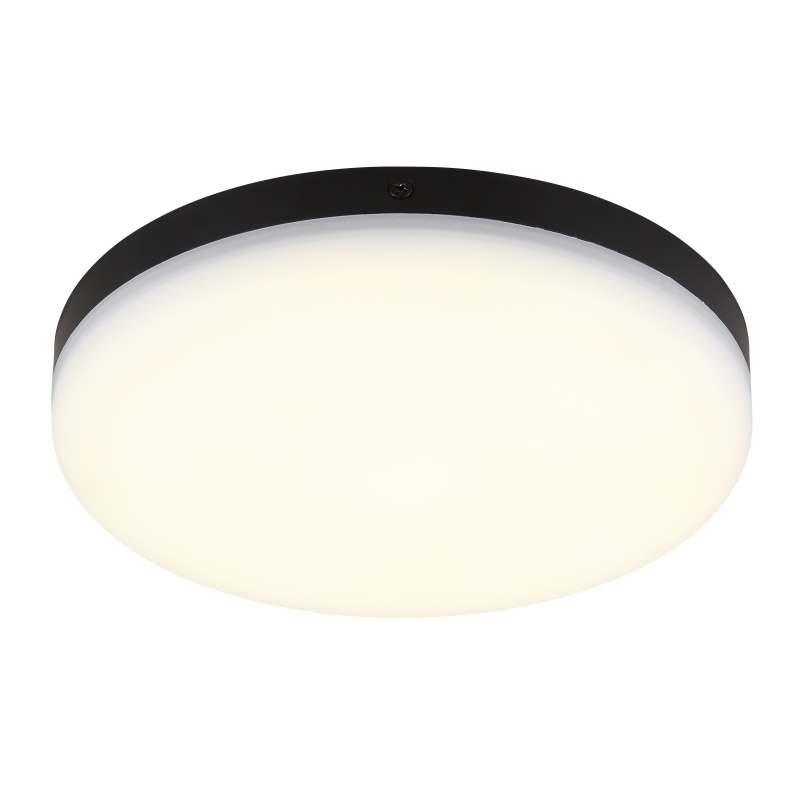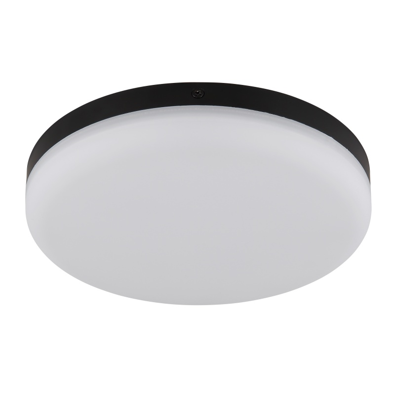 ceiling light plastic black matt, plastic opal, ø: 220mm, H: 50mm, incl. LED 12W 230V, 1430lm Source, 800lm Output, 4000K