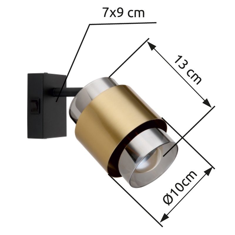 spotlights metal black matt, glass smoke colored, brass ring, rocker switch on the article, WxH: 100x170mm, AL: 145mm, excl. 1x E27 40W 230V