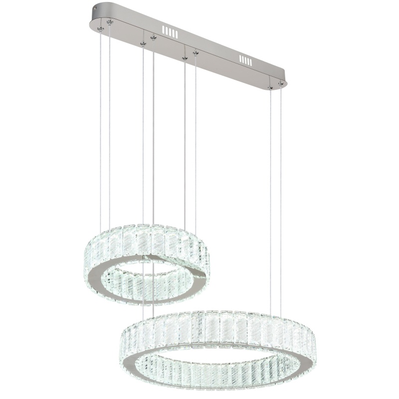 pendant lamp metal chromed, K5 crystals clear, chrome ring, Dimmable, Many Steps Wall Switch, Color fixing, Memory, Night light, Height reducible, Remote Control, LxWxH:630x500x1200mm, LED 80W 230V, 850-9280lm Source, 563-4405lm Output,CCT 2700-6000K