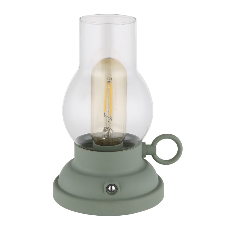 laualamp plastikust roheline matt, klaas läbipaistev, plastikust merevaigukollane, kaabel PVC valge, Touch On/Off, puutetundlik dimmer, v.a adapter, USB-A 2.0 -USB-C, akuga kaasa CR18650 s 1200mAh 3.7V, PxLxK: 125x107x175mm, kaabli pikkus 1000mm, sh. LED 1W 230V, 80lm allikas, 65lm väljund, 2700K
