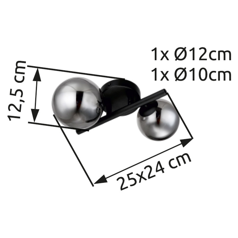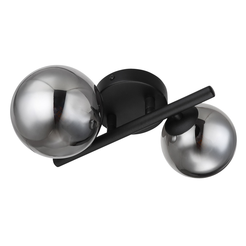 wall light metal black matt, glass smoke colored, LxWxH: 240x250x125mm, incl. 2x G9 LED 3.5W 230V, 350lm Source, 80lm Output, 3000K, inkl. LED Leuchtmittel 10676