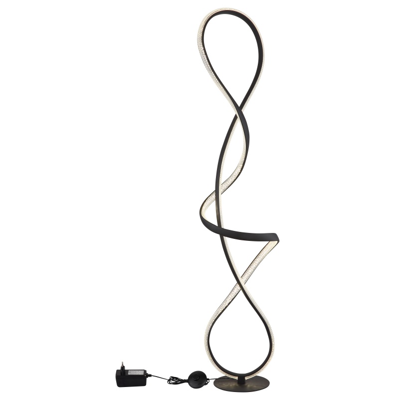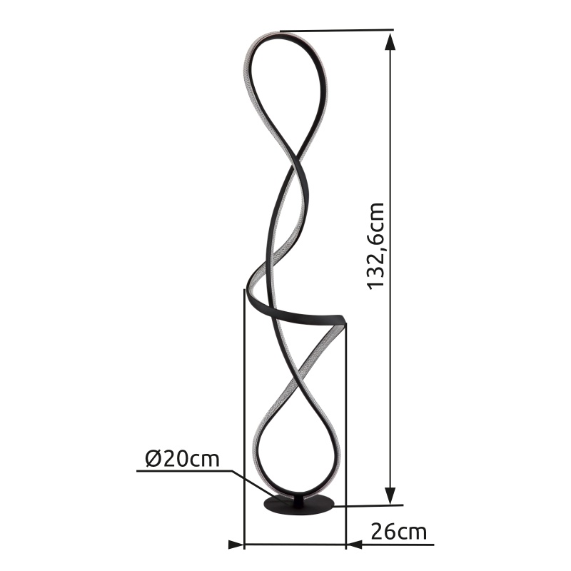 Põrandalamp metall must matt, alumiinium must matt, plastik läbipaistev, akrüül kristallselge, kaabel PVC must, Jalgpedaal kaablis, PxLxK: 260x200x1325mm, sh LED 36W 230V, 3860lm Allikas, 1810lm väljund, 4000K