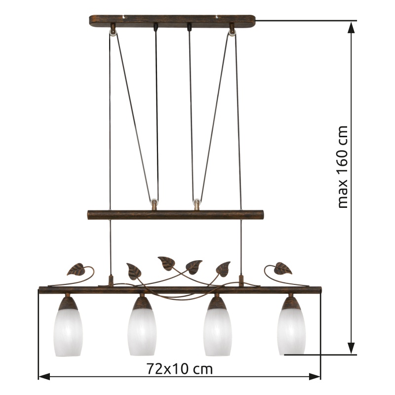 laelamp metallist roostevärvi, klaasist alabasteroptika, reguleeritav kõrgus, PxLxK: 720x100x1600mm, v.a 4x E14 28W 230V