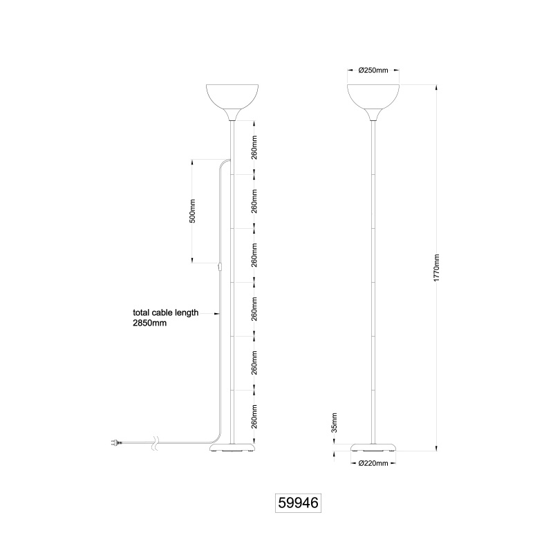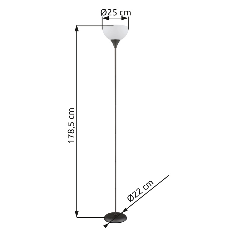 Põrandalamp metallist titaanvärvi matt, plastik valge, kaabel PVC must, klahvlüliti kaablil, ø: 250mm, K: 1785mm, Kaabli pikkus 2800mm, v.a 1x E27 60W 230V