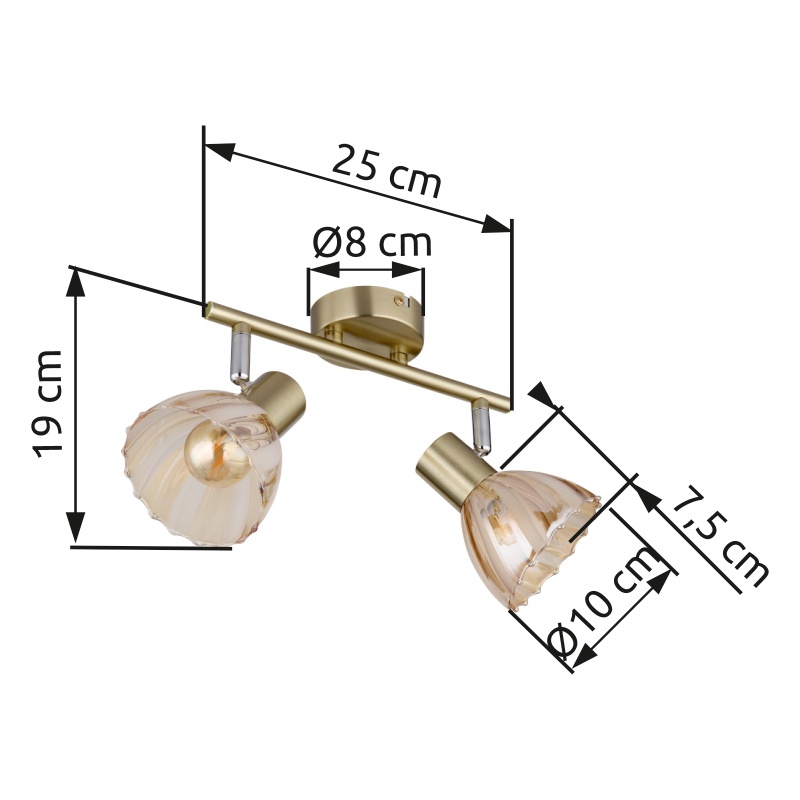 prožektorid metall messingvärvi matt, kroom, klaas merevaigukollane, satiin, pööratav / pööratav, PxLxK: 250x130x190mm, v.a 2x E14 40W 230V