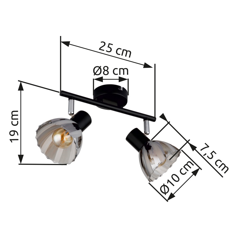 prožektorid metall must matt, kroom, klaas suitsuvärviline, satiin, pööratav / pööratav, PxLxK: 250x130x190mm, v.a 2x E14 40W 230V