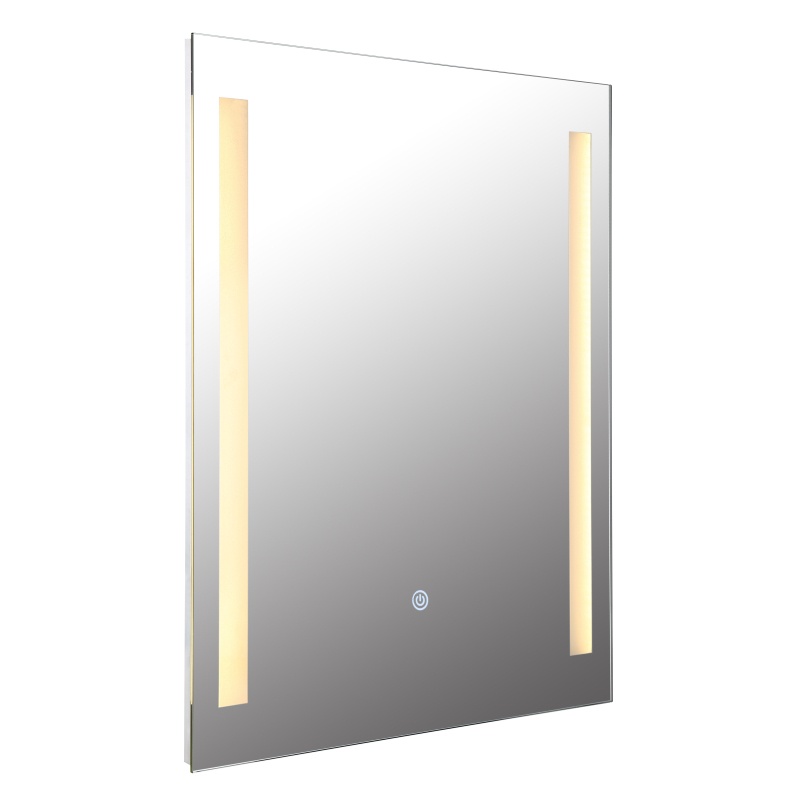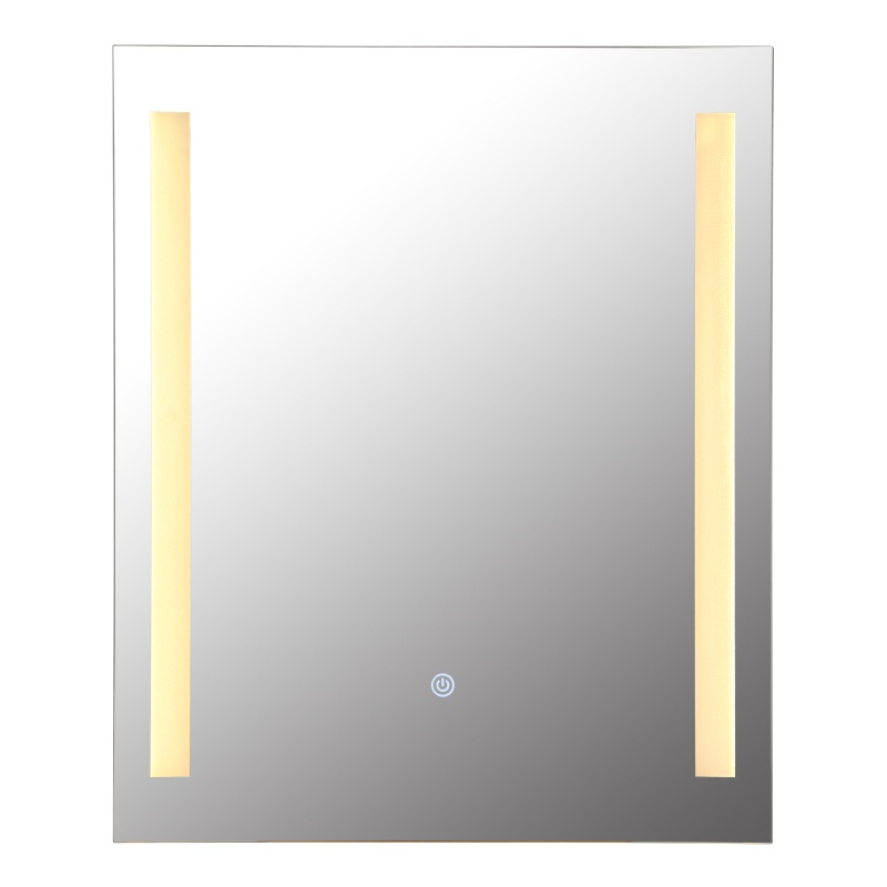 Mirror, glass satined, Touch On/Off, Continuous Touch Dimmer, Memory function, IP44, WxH: 500x610mm, AL: 25mm, incl. LED 12W 230V, 280-1200lm Source, 100-650lm Output, 3000K