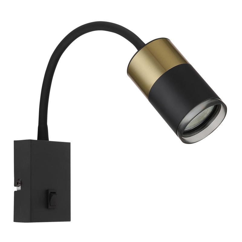 wall light metal black matt, aluminium copper colored matt, aluminium black matt, plastic smoke colored, cable PVC black, rocker switch on the article, Flexo, WxH: 70x430mm, AL: 330mm, Cable Length 1500mm, excl. 1x GU10 25W 230V
