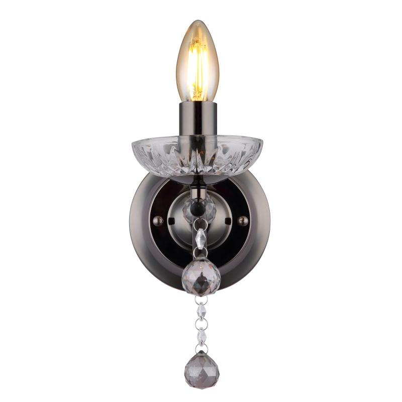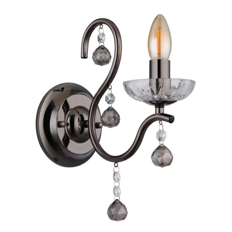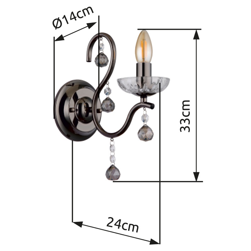 wall light metal gunmetal, glass crystals clear, glass crystals smoke colored, Light Shine Direction: up, WxH: 140x330mm, AL: 240mm, excl. 1x E14 40W 230V
