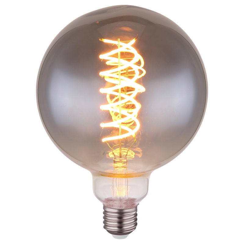 LED bulb glass smoke colored, Dimmable, ø: 125mm, H: 177mm, incl. 1x E27 LED 8.5W 230V, 280lm Source, 280lm Output, 2000K