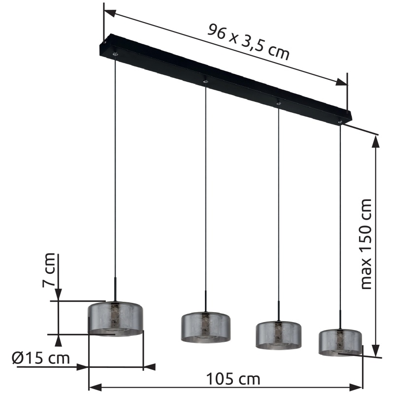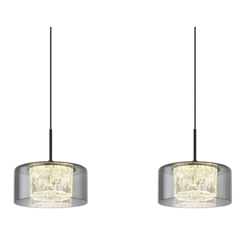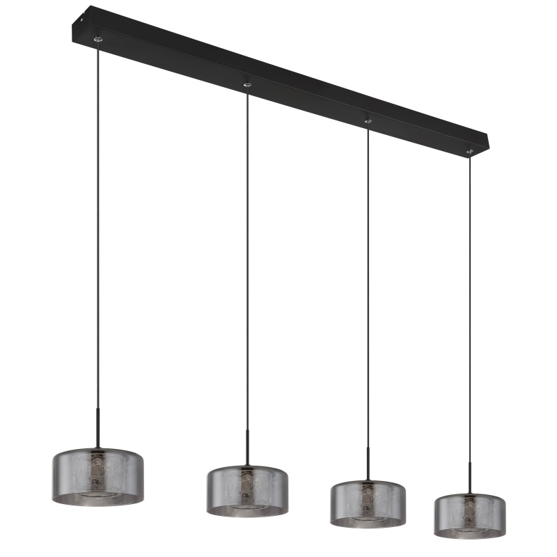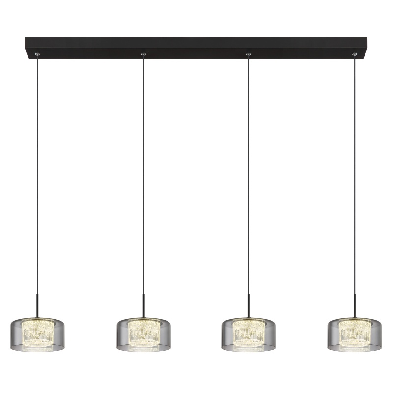 pendant lamp metal black matt, glass smoke colored, acrylic clear, cable PVC black, Height reducible, LxWxH: 1050x150x1500mm, incl. LED 32W 230V, 3700lm Source, 2100lm Output, 4000K