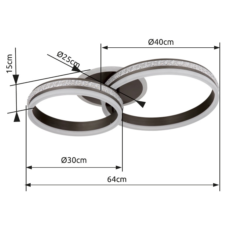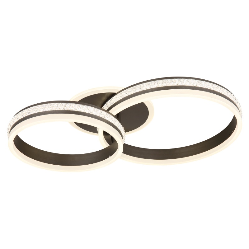 ceiling light metal/aluminium titanium color brushed, plastic crystals clear, acrylic, Dimmable, Many Steps Wall Switch, Memory, Night light, Remote Control, LxWxH: 640x400x150mm, LED 50W 230V, 648-5325lm Source, 442-2600lm Output, CCT 2700-6000K