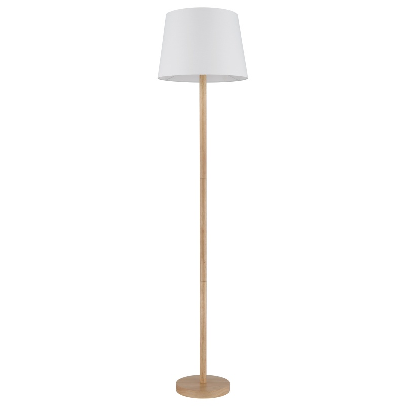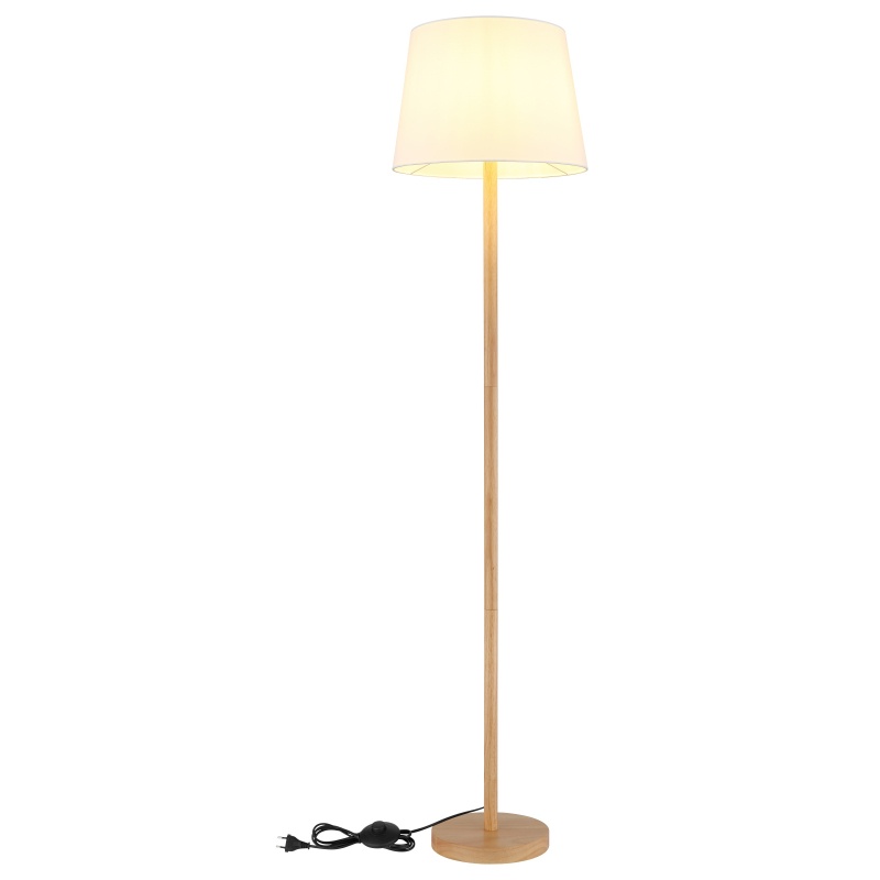 Põrandalamp metallist puidust välimus, tekstiil valge, kaabel PVC must, Jalgpedaal kaablis, ø: 350mm, H: 1510mm, Kaabli pikkus 1800mm, v.a 1x E27 40W 230V