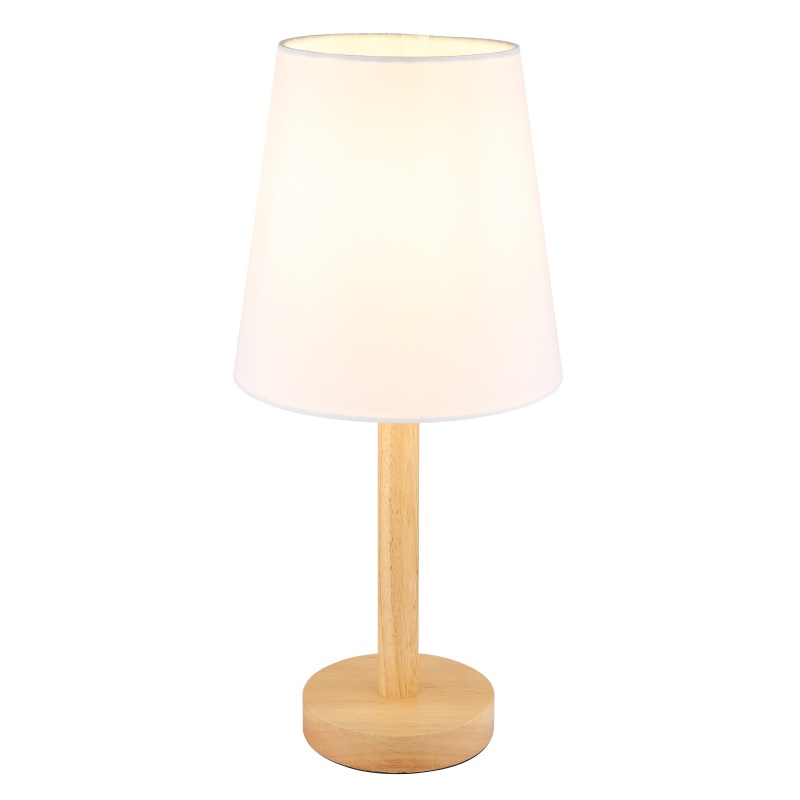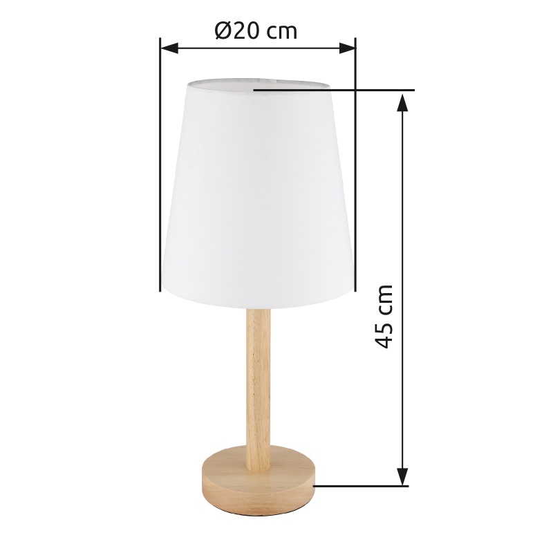laualamp metallist puidust välimus, tekstiil valge, kaabel PVC must, klahvlüliti kaablil, ø: 200mm, H: 450mm, Kaabli pikkus 1500mm, v.a 1x E14 25W 230V