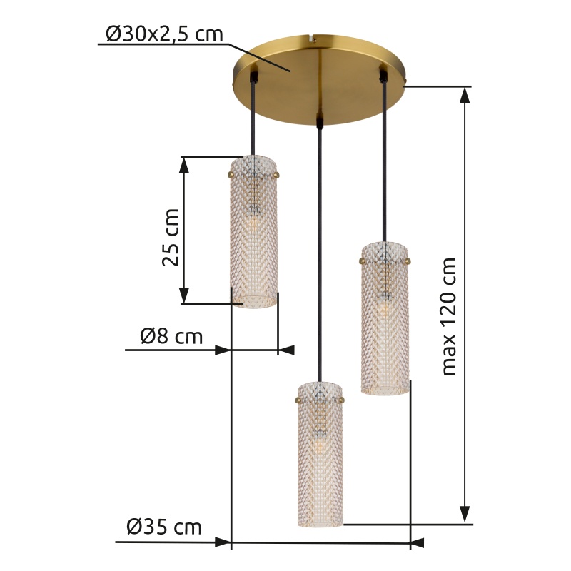 laelamp metall kuldsed värvid, klaas merevaigukollane, kaabel Tekstiil must, Vähendatav kõrgus, ø: 350mm, K: 1200mm, v.a 3x E14 40W 230V