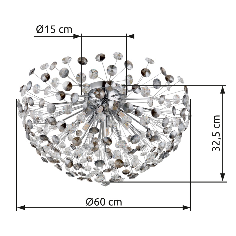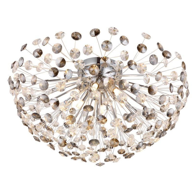 lae kergmetall kroomitud, K9 kristallid suitsuvärviga, läbipaistev, ø: 600mm, H: 325mm, sh 6x G9 LED 3.5W 230V, 350lm allikas, 350lm väljund, 3000K, inkl. LED pirn 10676