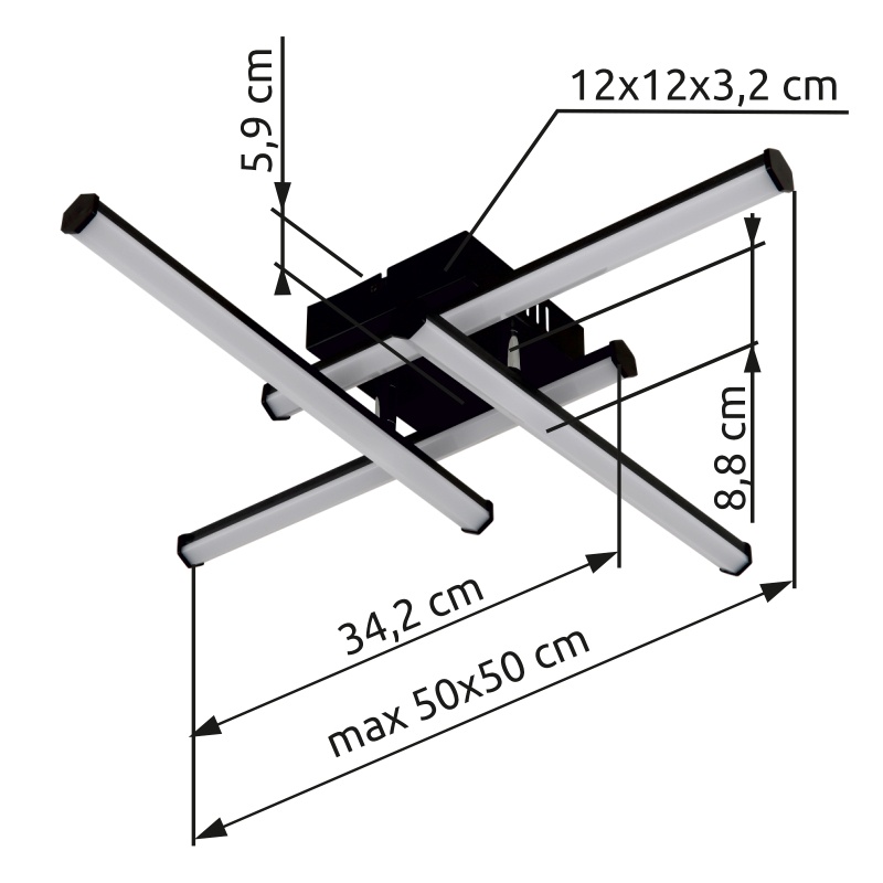 laevalgusti plastikust must matt, plastik must matt, plastik valge, pööratav / pööratav, PxLxK: 500x500x88mm, sh LED 24W 230V, 2490lm allikas, 1470lm väljund, 3000K