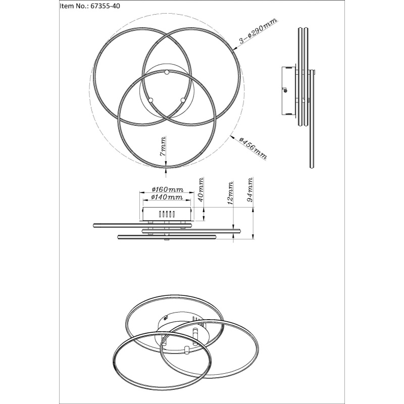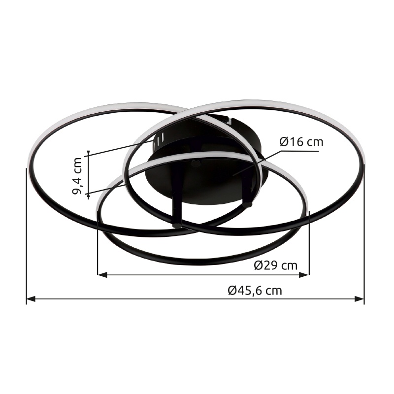 lae kerge metall must matt, alumiinium must matt, plastik valge, pööratav / pööratav, ø: 456mm, H: 94mm, sh LED 40W 230V, 4680lm Allikas, 2920lm väljund, 4000K