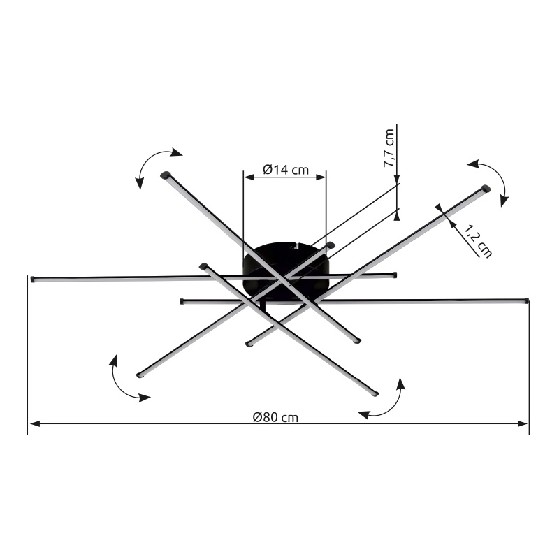 lae kerge metall must matt, alumiinium must matt, plastik valge, Teisaldatav, Ø: 800mm, H: 77mm, sh LED 40W 230V, 4345lm Allikas, 2870lm Väljund, 3000K