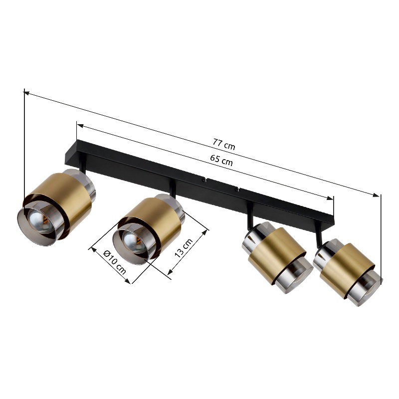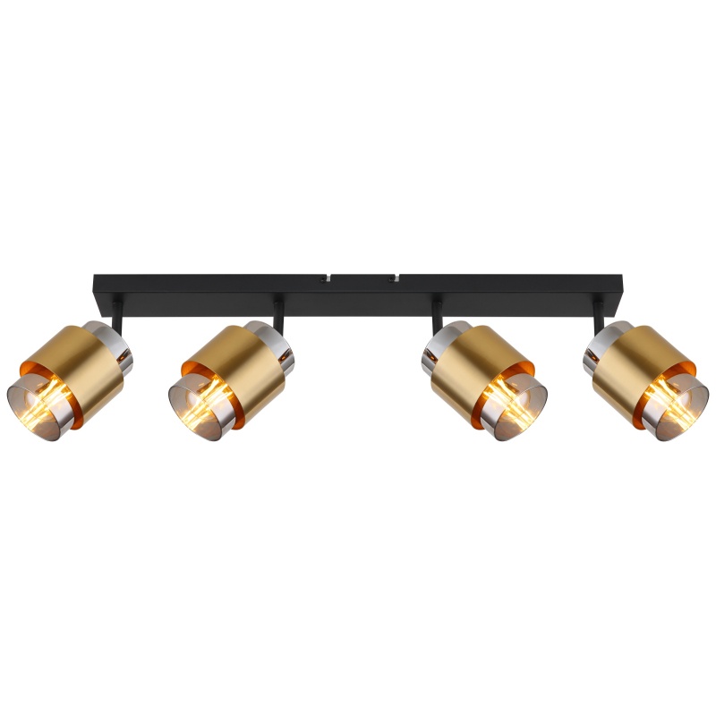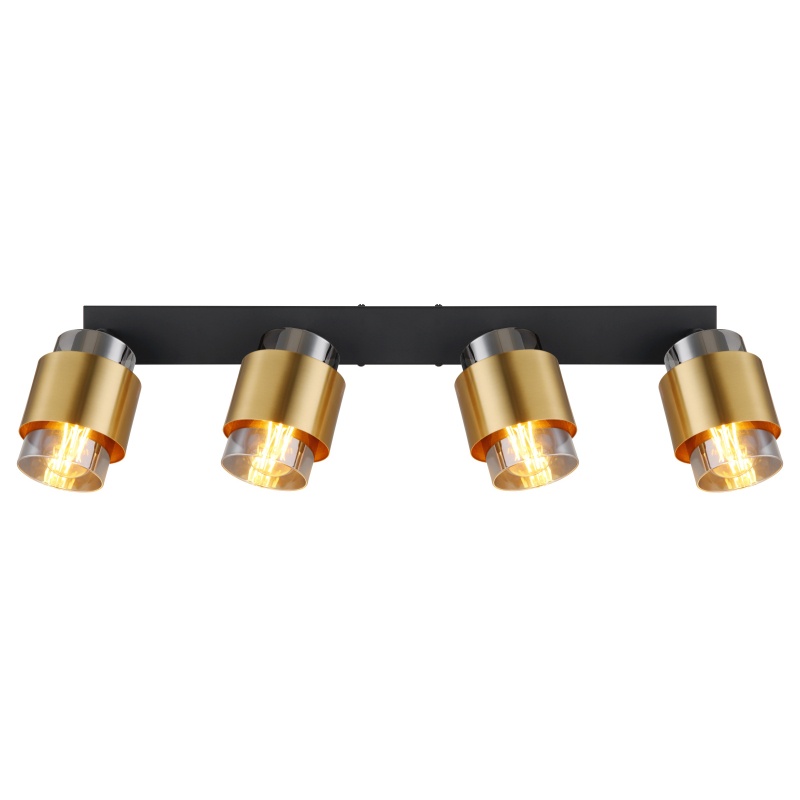 spotlights metal black matt, glass smoke colored, brass ring, LxWxH: 650x100x125mm, excl. 4x E27 40W 230V