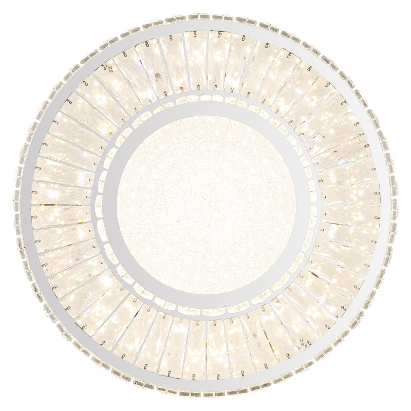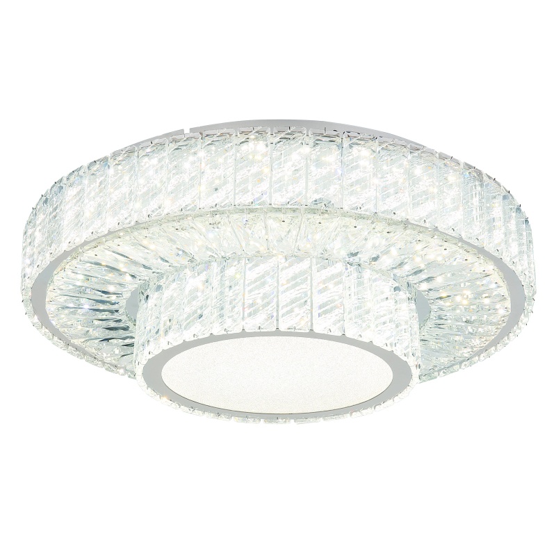 ceiling light metal chromed, K5 crystals clear, chrome ring, Dimmable, Many Steps Wall Switch, Color fixing, Memory function, Night light, Remote Control, ø: 500mm, H: 173mm, LED 50W 230V, 672-5520lm Source, 633-3965lm Output, CCT 2700-6000K